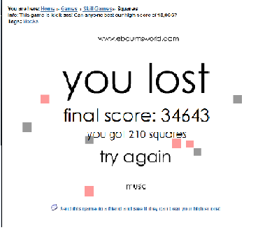 Поента је сакупити шо више црних квадратића и кружића, а избегавати црвене квадратиће и кружиће: